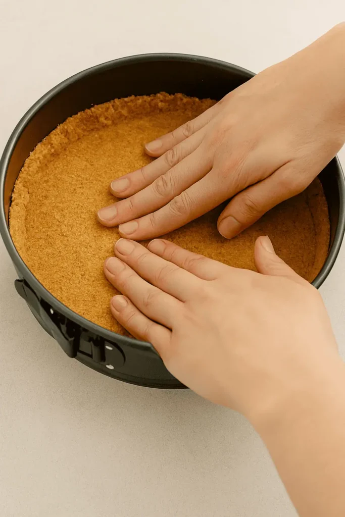 - 2️⃣ Press & chill: Press the mixture firmly into the bottom of a 9-inch springform pan, or divide into dessert jars for individual servings. Chill while preparing the filling.