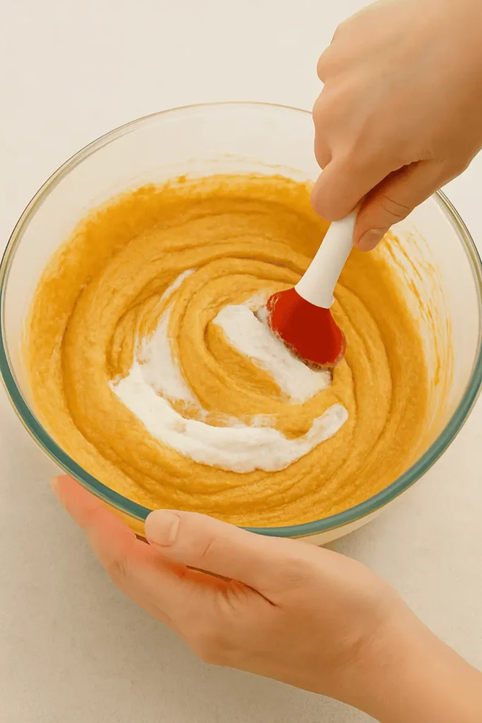 - 5️⃣ Fold together: Gently fold the whipped cream into the pumpkin mixture until fully blended and airy.