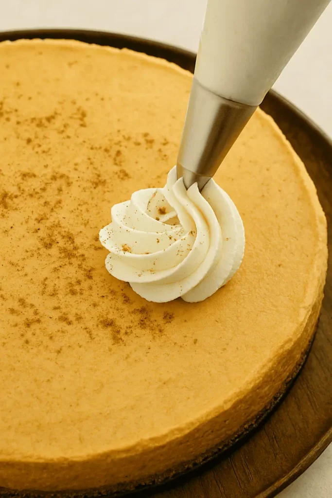 - 7️⃣ Garnish & serve: Top with whipped cream and a sprinkle of cinnamon before slicing. Serve chilled and enjoy!